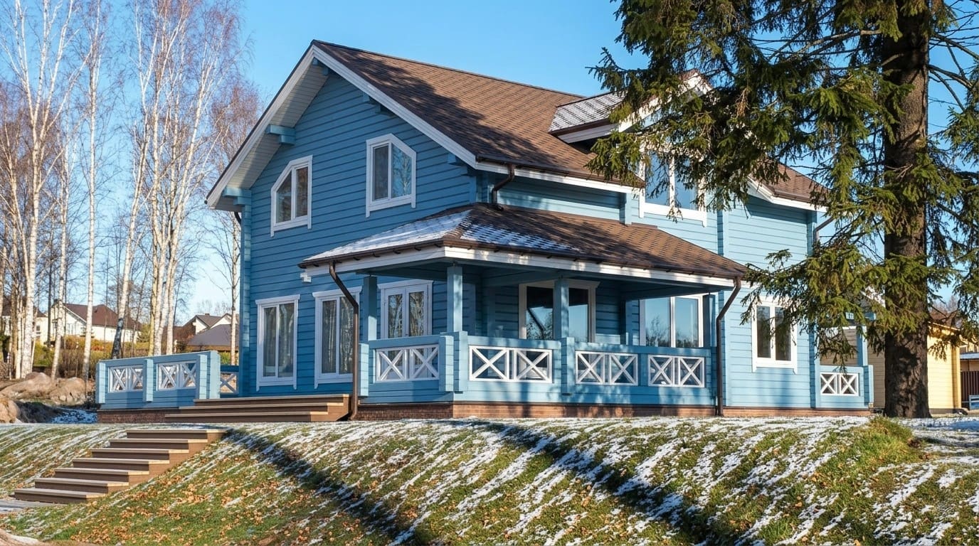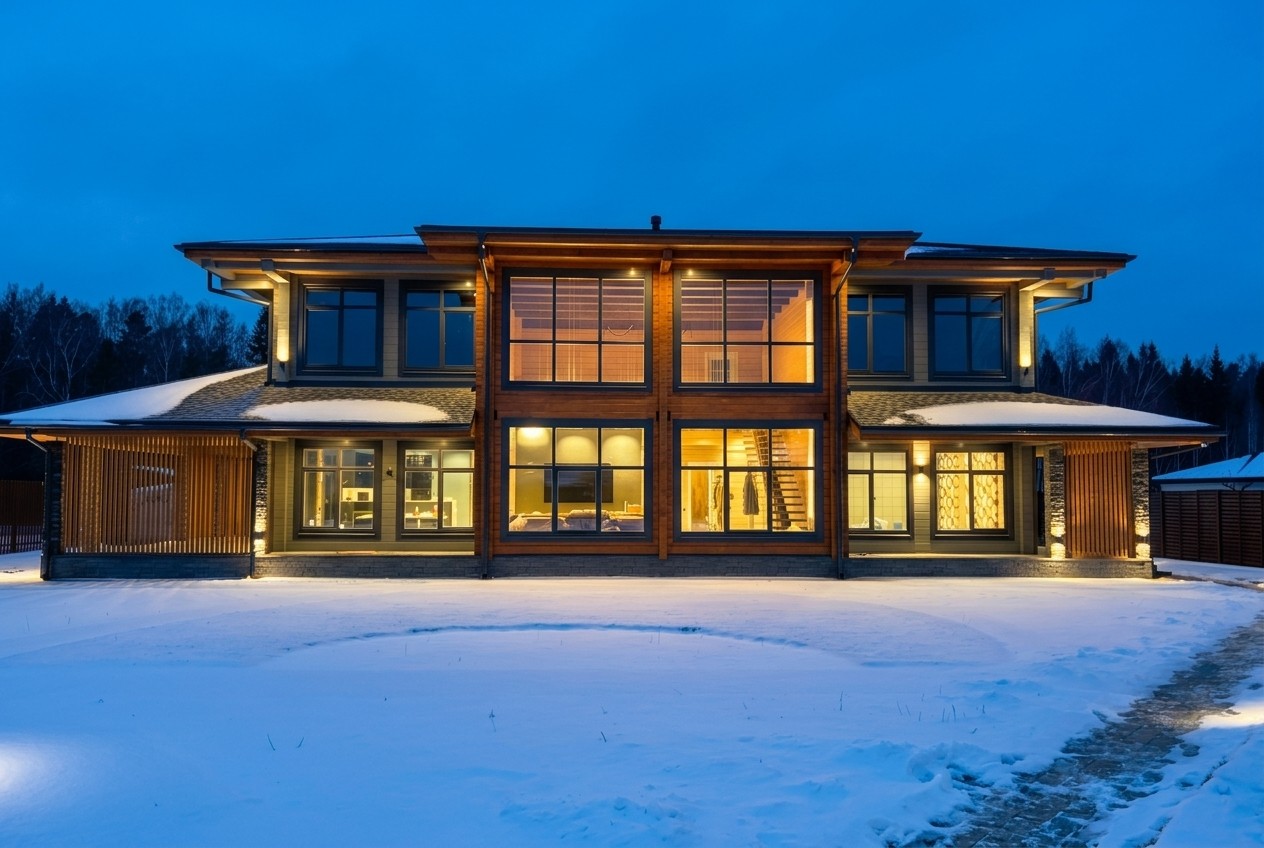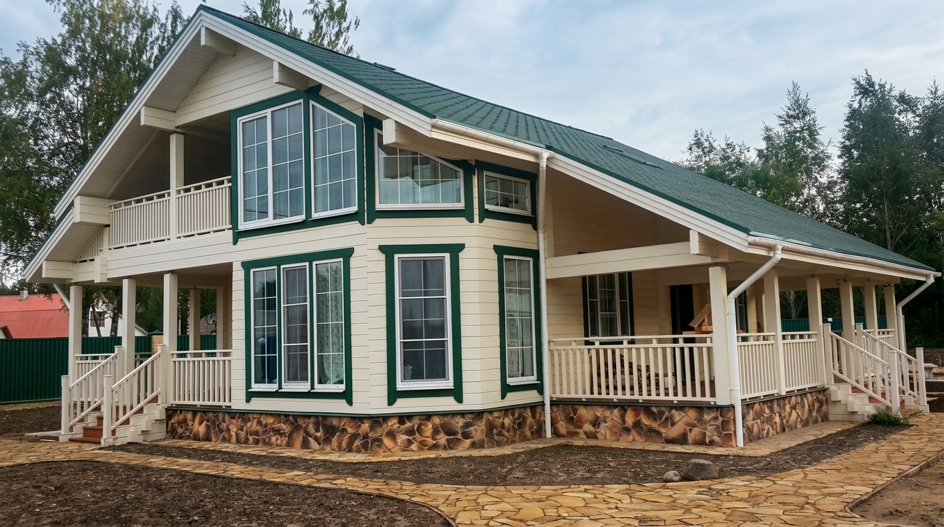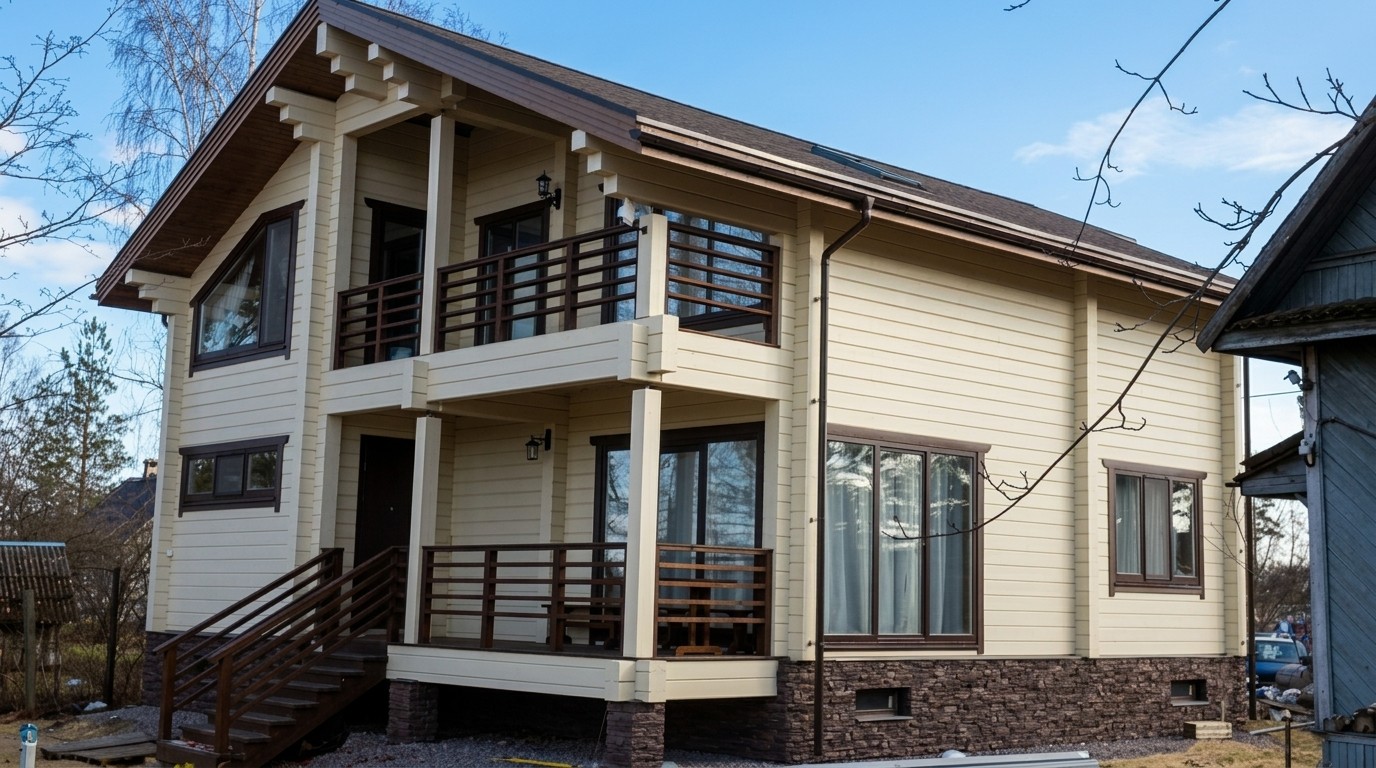 Клееный брус - дом близнец у реки Авачи