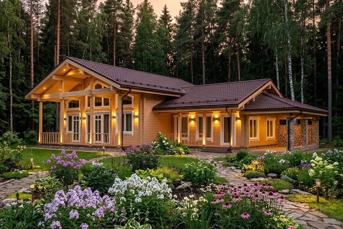 Стены. В смете внешние стены минимум из клееного бруса 185(H)х200 мм. Мы считаем не целесообразно строить дом с внешними стенами меньшего сечения в центральном и северном регионах. Это оправдано с точки зрения затрат на отопление. Внтуренние стены также из клееного бруса и включены в стоимость теплого контура.