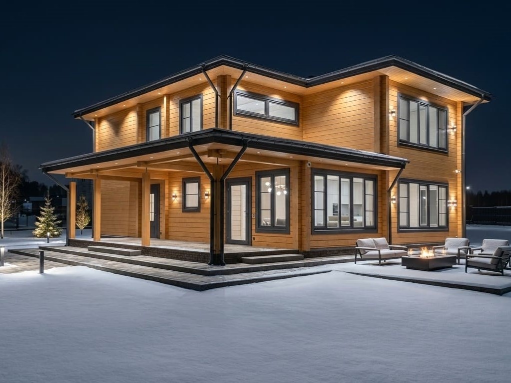 Стены из клееного бруса готовые к сборке. Запилены необходимые отверстия, пазы в оконных и дверных проемах. Сечения бруса 186 (h) ширина на выбор 120, 160, 200, 240 мм. Мы используем финский профиль с двумя тепловыми замками. Межвенцовый утеплитель Аватерм — этот материал не слеживается и не впитывает влагу.