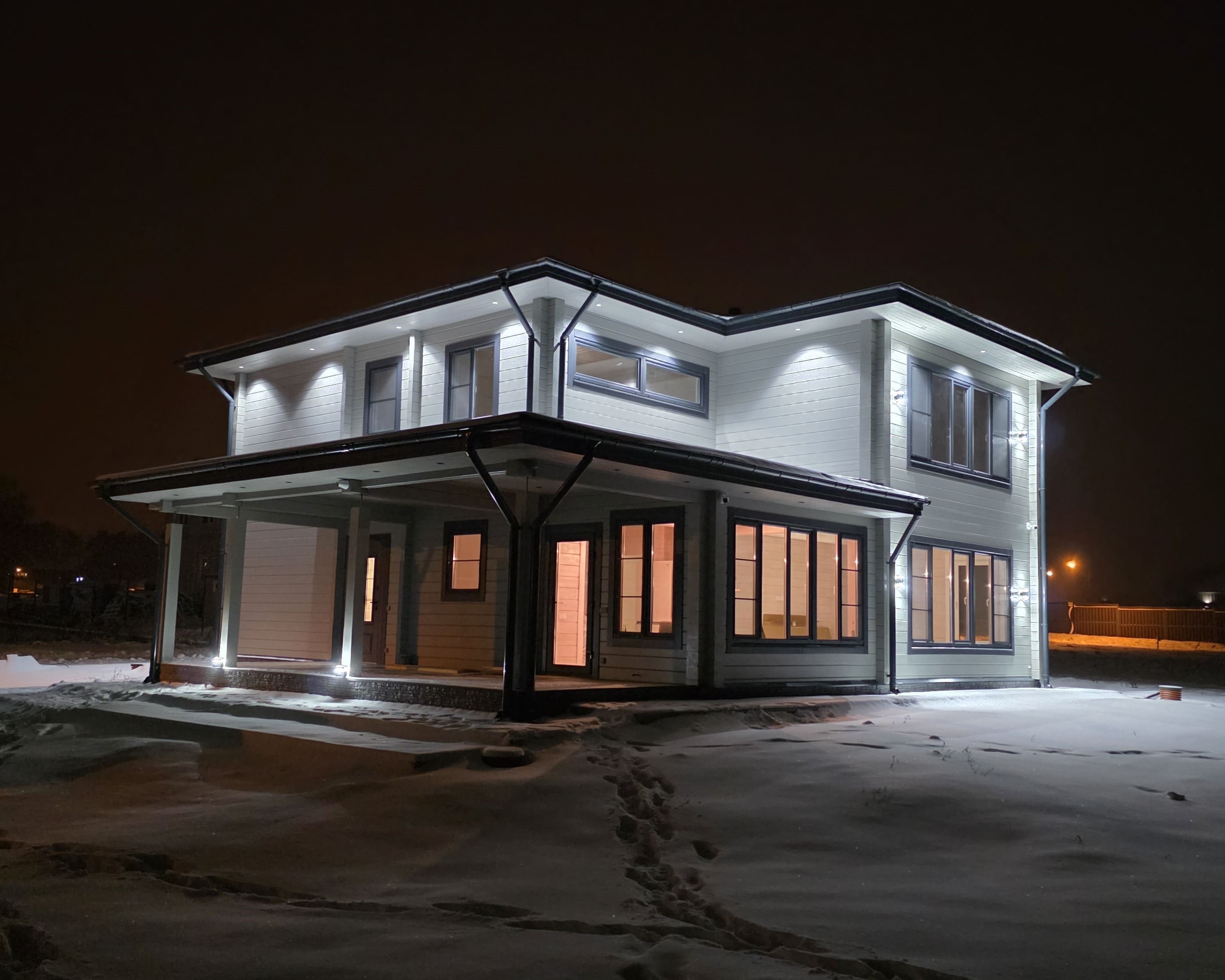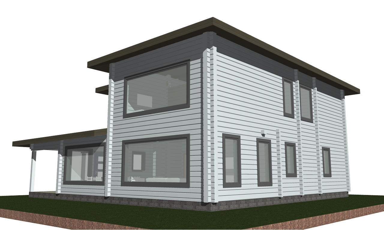 2 этажа, 5 спален, большая гостиная, большая кухонная зона, переходящая в столовую, постирочная, 3 саун. узла, котельная, терраса